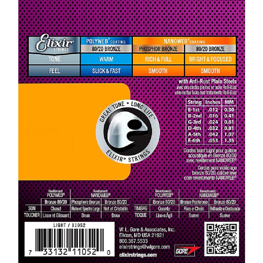 Elixir's Acoustic 80/20 Bronze Strings featuring their superb NANOWEB Coating deliver a bright, lively tone together with the extended tone life that players have come to expect from Elixir Strings.