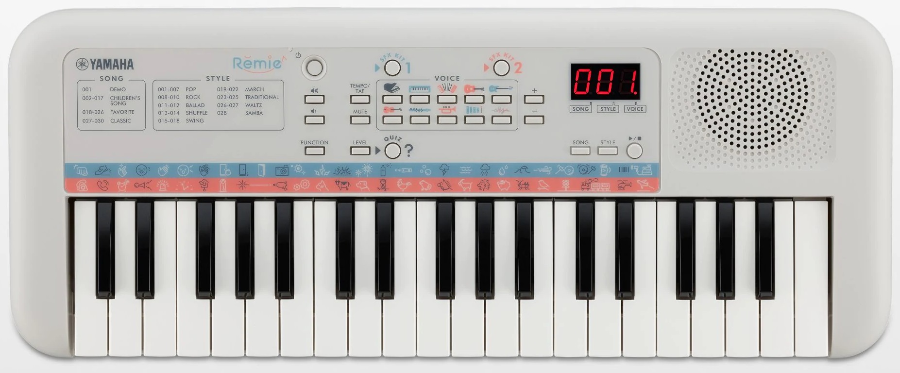 Beautiful instrument sounds as well as vehicle noises, animal noises, and other exhilarating sound effects stimulate your child's curiosity. Quiz mode is a great way to naturally develop a musical foundation while having fun, and asks your child to guess the sound effects it plays. It also features a more advanced mode that asks children to guess the right notes. The Remie PSS-E30 comes with preset songs, all enjoyable versions of famous tunes your child will hear throughout their life.