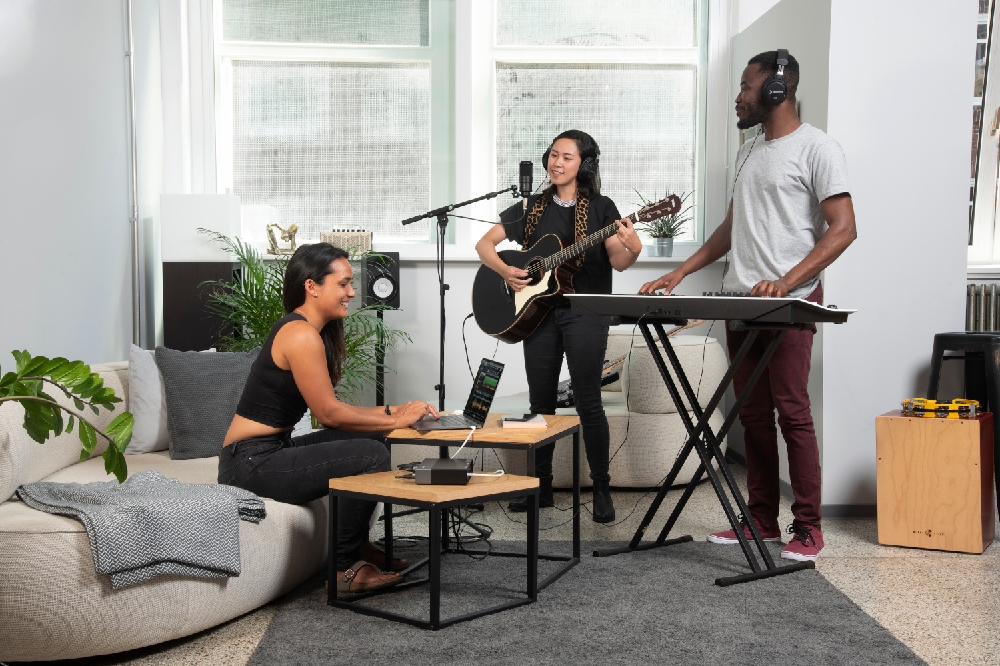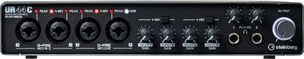 Gather your friends to produce music in exceptional quality with the UR44C, a rugged, portable audio interface that features flexible inputs and professional-level 32-bit/192 kHz recording quality. Four state-of-the-art D-PRE microphone preamps will capture your vocals and acoustic instruments in stunning detail, while Hi-Z and line inputs, plus MIDI In/Out, allow an entire group to be recorded, capturing the unique vibe of an ensemble performance. With two independent headphone outputs, latency-free monitoring with effects and Cubase AI recording software included, the UR44C is your key to producing great grooves together.