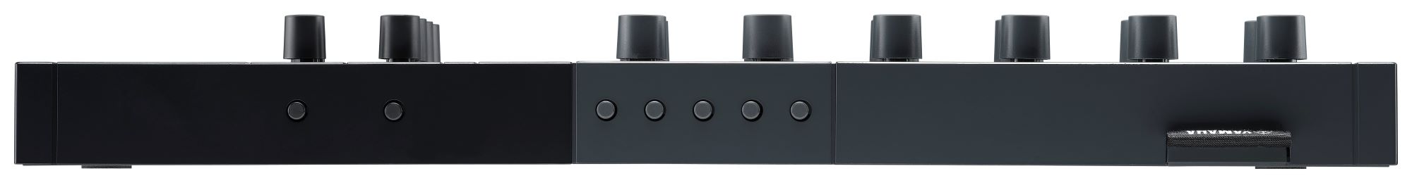 The first section of sounds on the Yamaha SEQTRAK is the drum section featuring seven tracks: kick, snare, clap, two hi-hats and two percussion sounds. Each of these tracks can be loaded with high-quality sounds from the extensive library. The sound library currently contains over 2,000 sounds across all SEQTRAK instrument categories and will be further expanded upon with additional sound packs. It is also possible to add other user’s samples via the SEQTRAK app. These sounds are then arranged on the step sequencer with its up to 128 steps, 16 of which are displayed through the step buttons on the face.