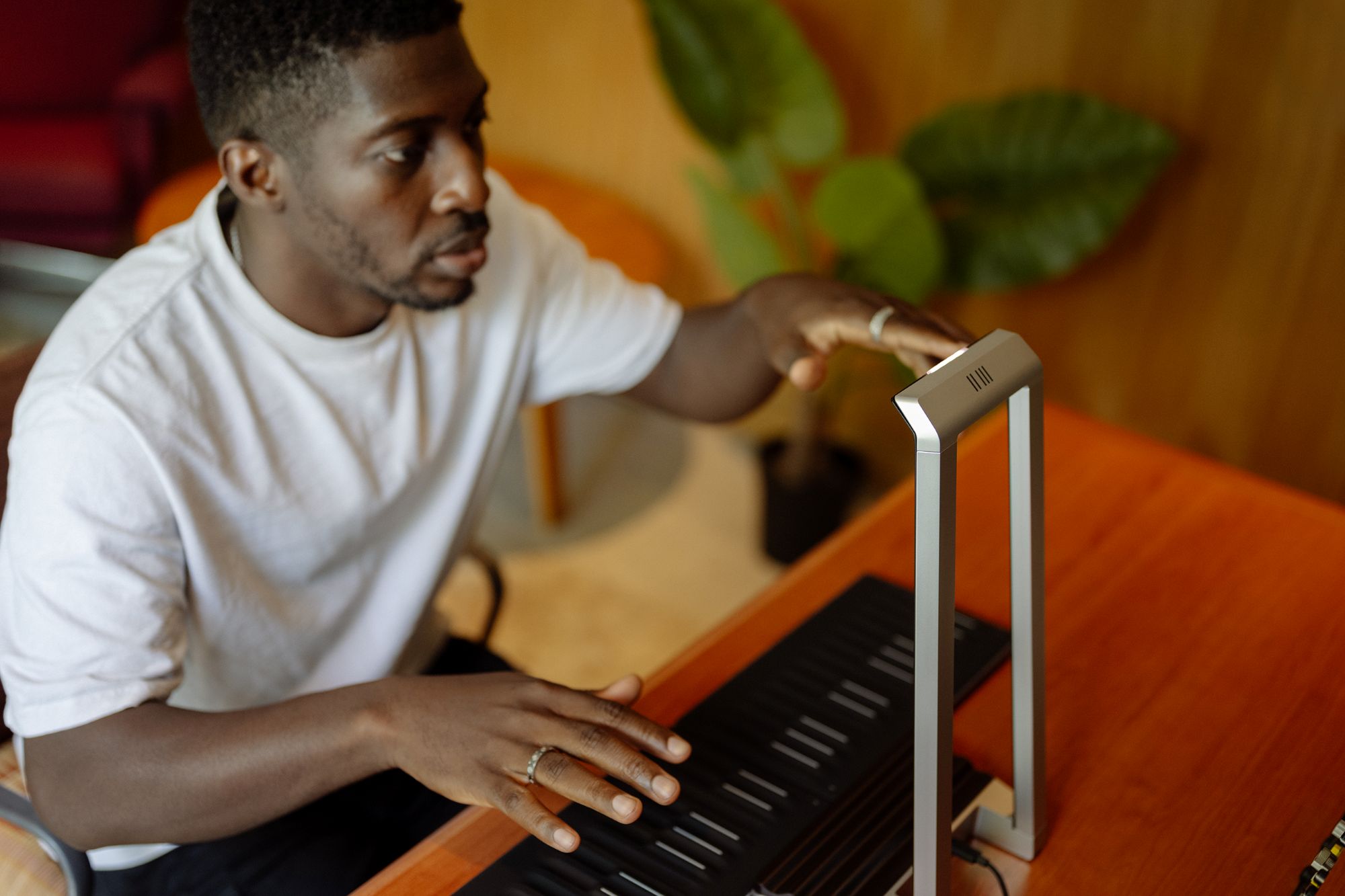 This cutting-edge instrument transforms how you compose, perform, and interact with electronic sound. Using ROLI's revolutionary Seaboard technology, the AirWave Create allows for intuitive pitch bending, polyphonic aftertouch, and gestural control, making it an essential tool for expressive sound shaping and dynamic music creation. It is optimised for modern DAWs and performance settings, providing unparalleled expressiveness for both studio production and live stage work.