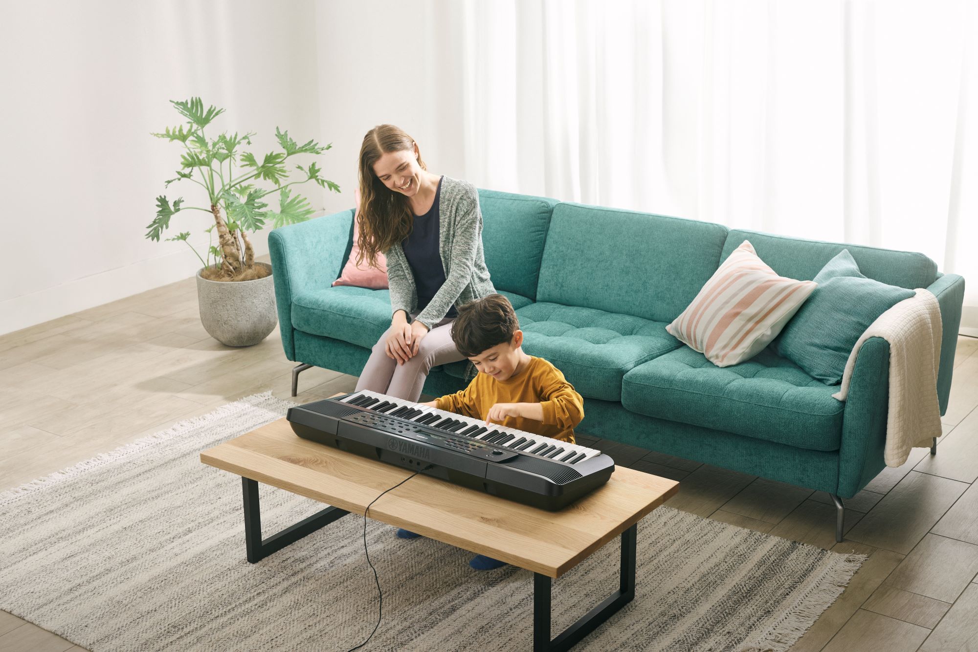 In addition to many beautiful Piano sounds, this keyboard has a variety of realistic instrument Voices, including Guitar & Bass, Percussion & Drums, and even entertaining sound effects, including barking dogs and meowing cats. Choose your favorite Voices when you play or practice. And enjoy the wonderful expressiveness of Yamaha's Grand Piano Voice — built into the keyboard!