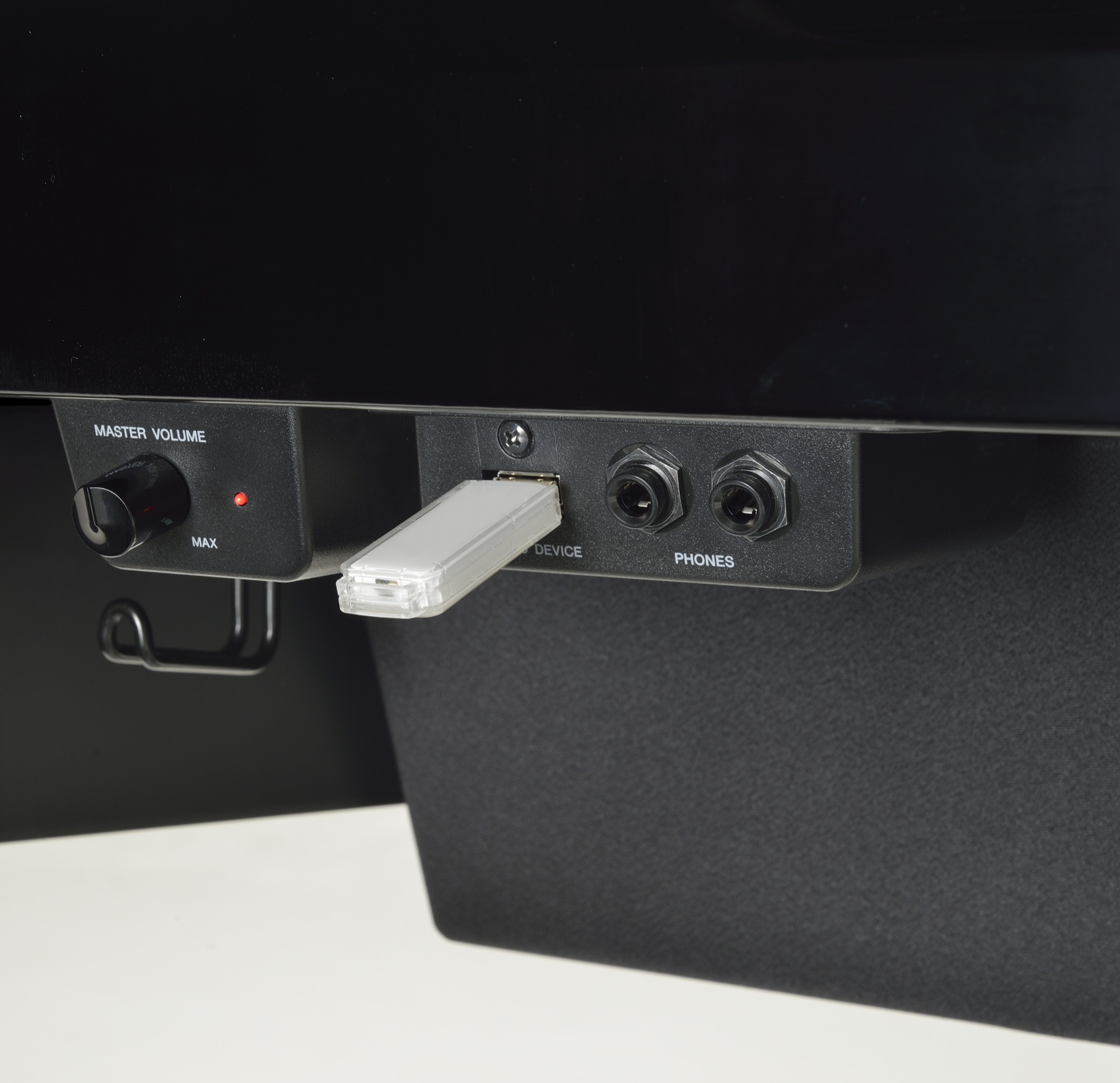 The USB to Device port allows you to connect your USB flash drive and use it as a built-in piano recording studio. You can store your performances directly on the USB flash drive as audio songs. These songs are stored in WAV format, so you can listen back using the keyboard's on-board speaker system, or conveniently play them on a computer, transfer them to a portable media device or upload them to share with friends online.