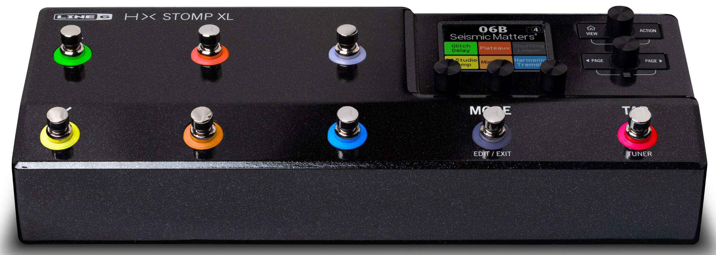 HX Stomp XL is a professional-grade amp and effects processor that delivers HXTM modeling in a performance-ready pedal with eight capacitive-touch footswitches. The same SHARC DSP chip found in our flagship Helix products enables the HX Stomp XL pedal to run up to eight processing blocks simultaneously, and the assignable footswitches let you access and control those blocks in powerful ways, making it flexible enough for use in nearly any applica-