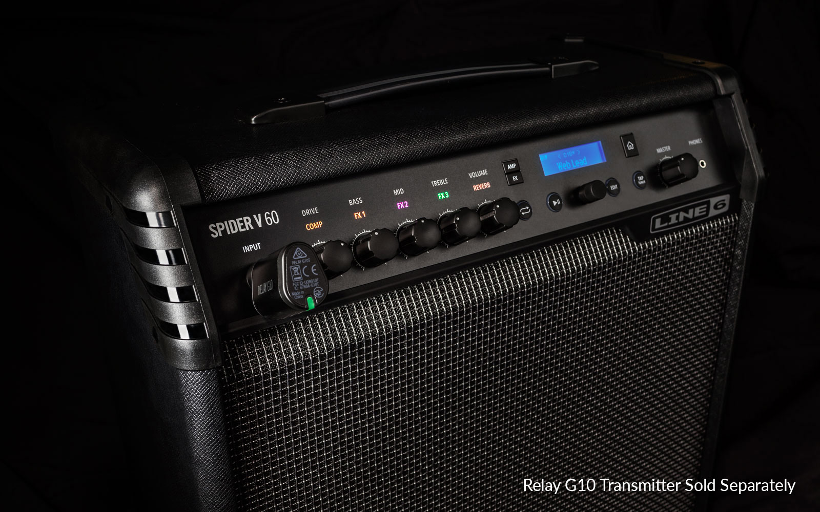 Plus, Spider V 60 is packed with over 100 specially designed presets - including iconic rigs, artist-built tones and Line 6 originals - giving you instant access to an arsenal of professionally dialed-in sounds. Spider V 60 even comes wireless-ready - just add an optional Relay transmitter. More than just a great amplifier, it’s the Spider you’ve been waiting for.