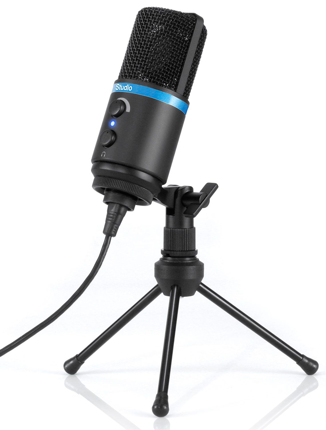 To ensure you’ll always record at your best, iRig Mic Studio comes with a full set of flexible controls: It has a gain control knob and a multicolor LED level indicator. It also includes a headphone output with its own level control for onboard monitoring directly from iRig Mic Studio itself. And, for better positioning while recording, iRig Mic Studio comes with a sturdy and portable tabletop tripod stand.