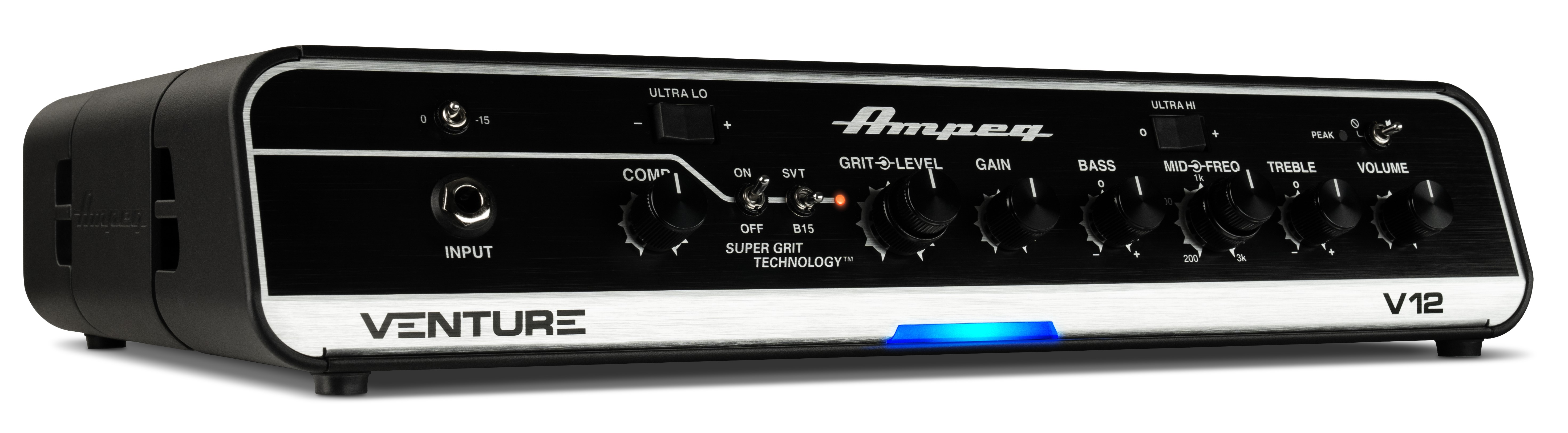 Featuring easy-to-use and intuitive controls, the Venture V12 offers an extensive array of tone-shaping tools that include a legacy preamp, 3-band EQ with sweepable Mids, Ultra Hi and 3-way Ultra Lo switches, a Super Grit Technology™ (SGT™) Overdrive circuit with SVT® and B15 voicings, and a highly musical variable compressor. An effects loop with Mix control, an XLR direct output, an Aux input, and a Phones output enhance connectivity, as do the Neutrik® speakON® outputs. All circuitry is analog except for the solid-state Class D amplifier. Add an optional AFS2 footswitch for remote control of the SGT overdrive and other functions, and an optional heavy-duty padded Venture carrying bag to protect your Venture V12.