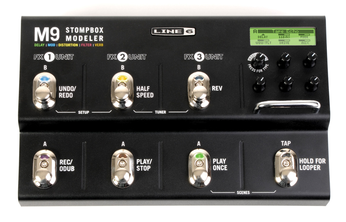 M9 Stompbox Modeler gives you an instant collection of vintage and modern stompbox tones and effects. Sink your teeth into more than 100 tangy choruses, syrupy sweet reverbs, distinctive distortions, and more. Many of the effects are from famous Line 6 pedals and rack units including DL4™ Delay Modeler, DM4™ Distortion Modeler, FM4™ Filter Modeler, MM4™ Modulation Modeler, Verbzilla® and Echo Pro™.