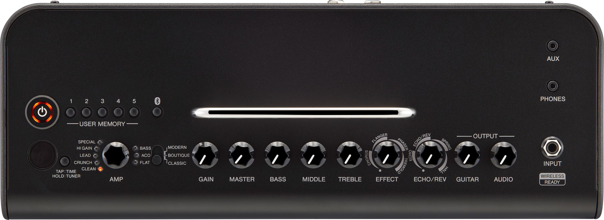 - Controller/Switch: AMP, GAIN, MASTER, BASS, MIDDLE, TREBLE, EFFECT, ECHO/REV, GUITAR OUTPUT, AUDIO OUTPUT, USER MEMORY Switch x 5, TAP/TUNER Switch