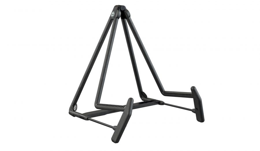 A very unique guitar stand suitable for acoustic, bass and electric guitars. Also suitable for headless guitars, cellos and french horns. 5-way width adjustment. Compact, folding design makes it easy to transport and store. Exclusive non-marring material to protect guitar finishes is molded onto stand during the manufacturing process.