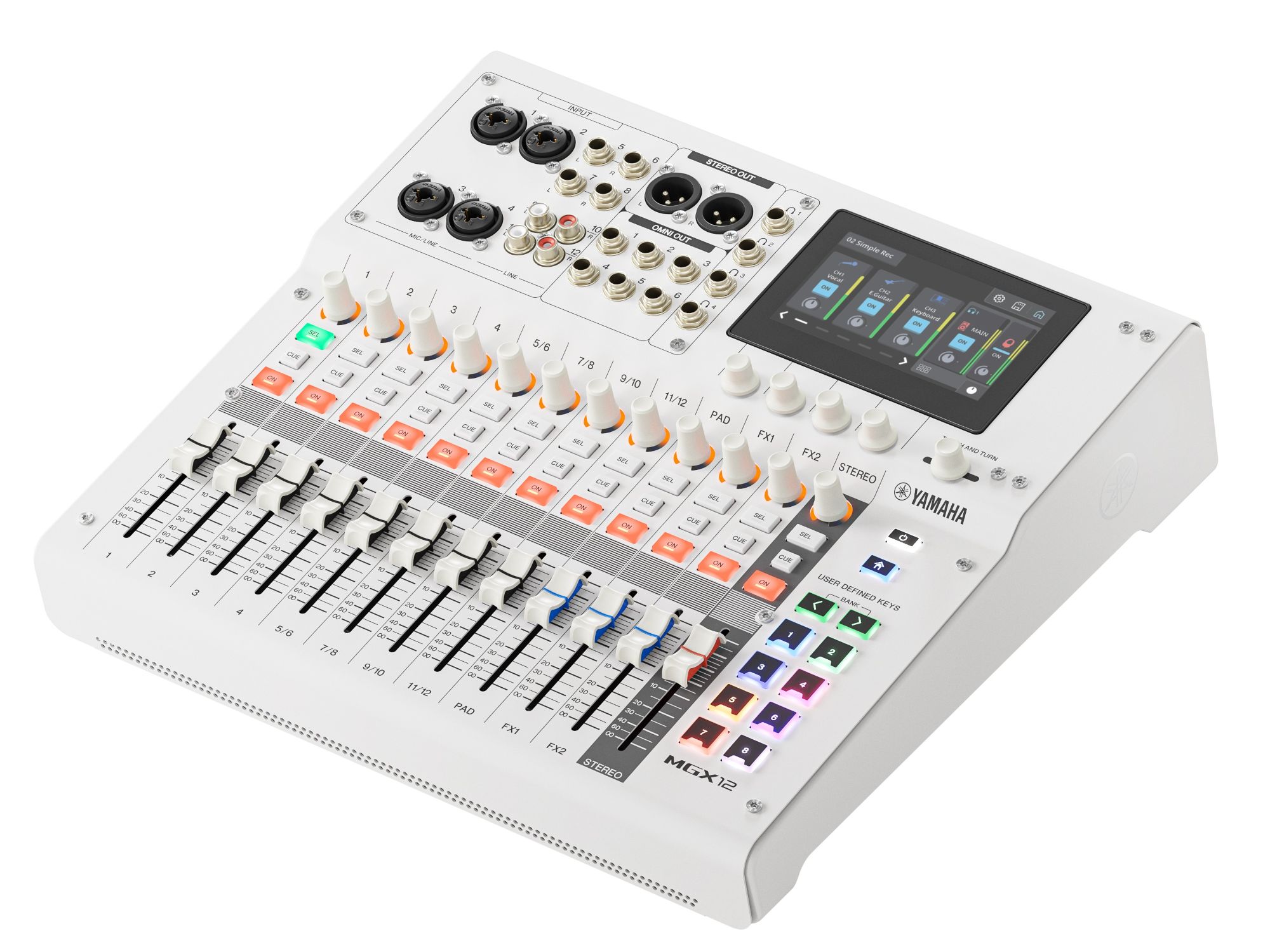 The highly versatile MGX digital mixing console is equipped with professional-quality effects, flexible routing, and a wide range of other features that can all be operated fast and intuitively using its touch-panel GUI, comprehensive controllers, assistive functions that streamline workflow, and scene recall capability. The MGX provides an operating experience that keeps your creative workflow focused and free of interruption.