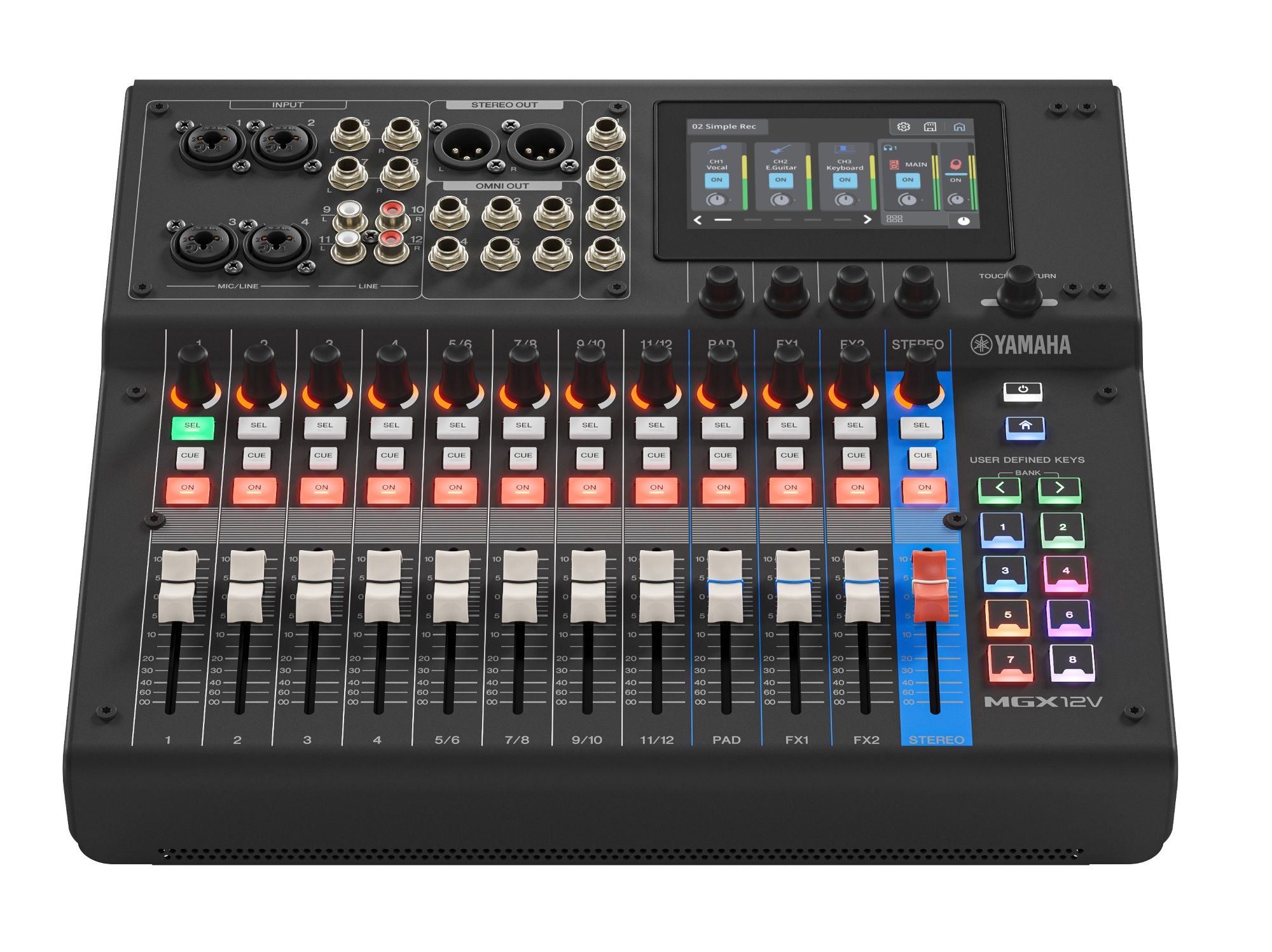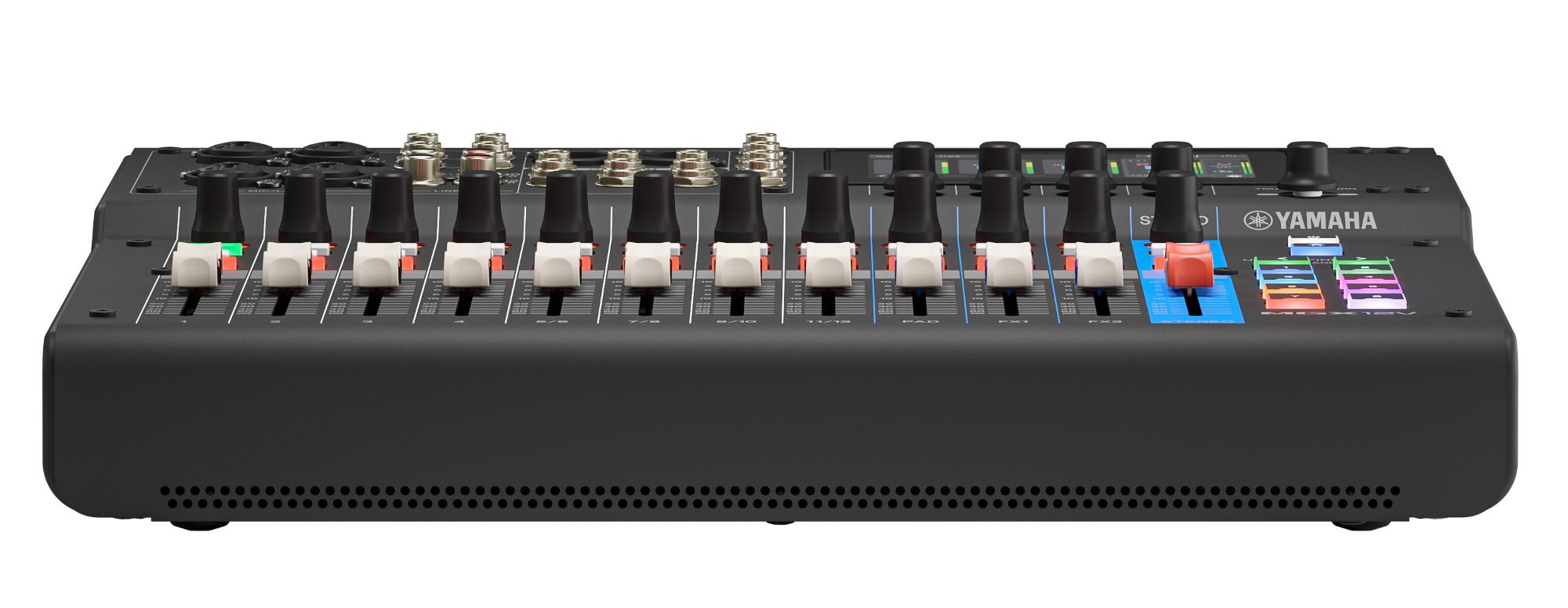 • User Interface ~ 4.3-inch touch screen, 12 x 60 mm fader, 12 x SEND knob, 5 x rotary encoder (4 x screen knob, 1 x "TOUCH AND TURN") 4