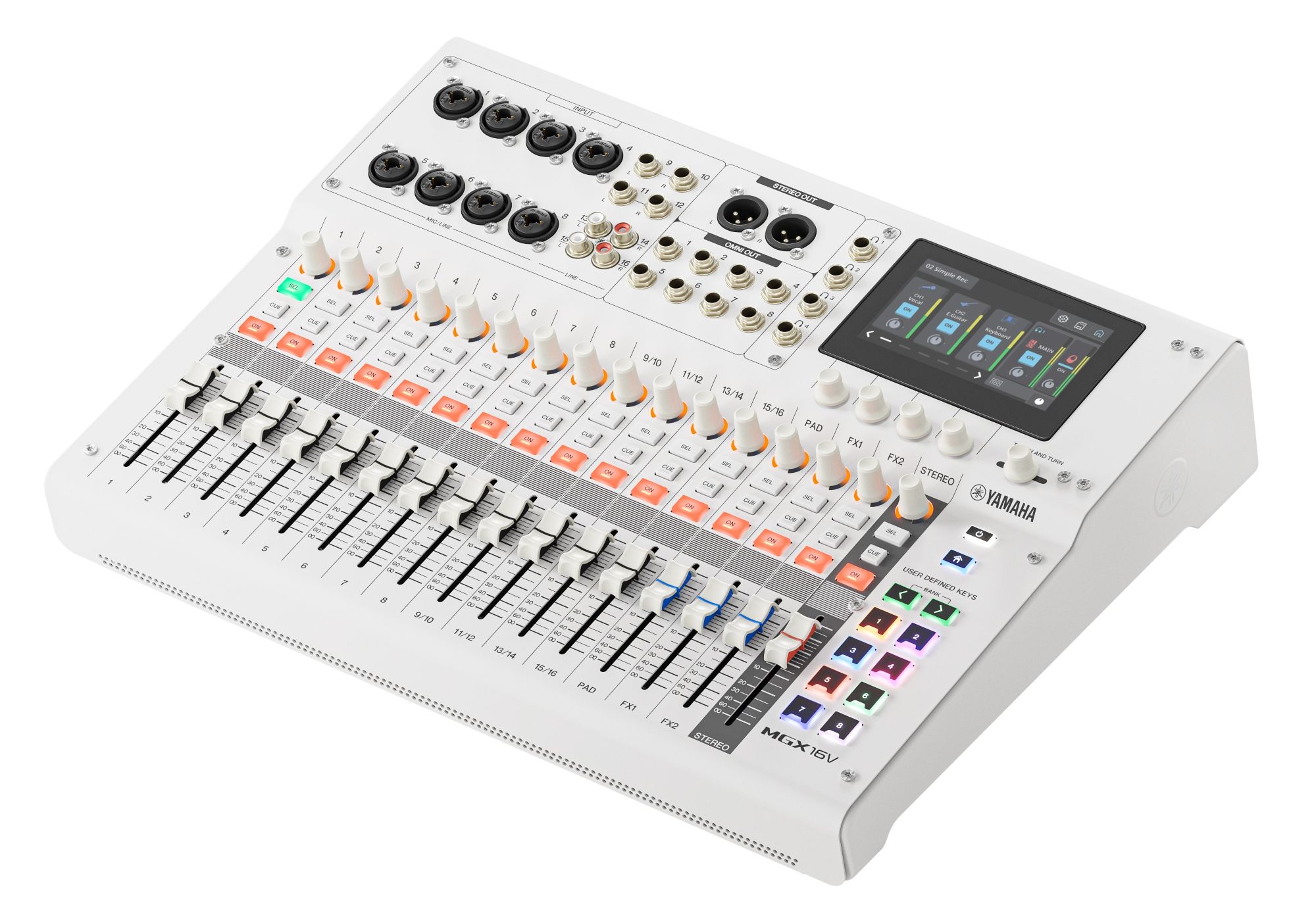 The highly versatile MGX digital mixing console is equipped with professional-quality effects, flexible routing, and a wide range of other features that can all be operated fast and intuitively using its touch-panel GUI, comprehensive controllers, assistive functions that streamline workflow, and scene recall capability. The MGX provides an operating experience that keeps your creative workflow focused and free of interruption.