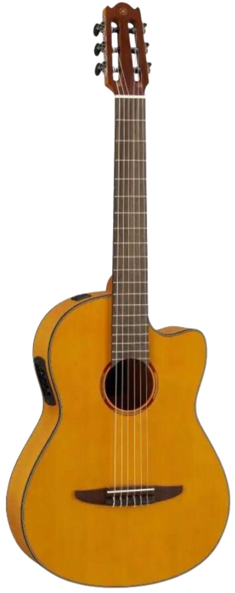 The NCX1 acoustic-electric guitar’s contemporary appearance, traditional neck profile, and advanced electronics make it an excellent choice for nylon-string players seeking superior amplified sound, while its strap buttons and exceptional amplified sound make it especially appealing to performing guitarists.