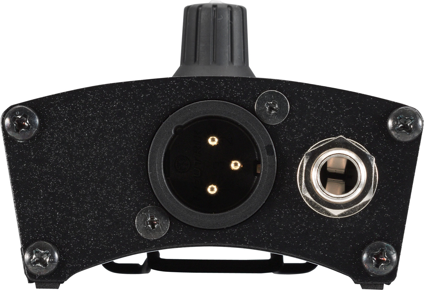Easy connections to PA equipment - heavy duty electronic control box features a balanced out XLR, 1/4” jack, 1/8” independent headphone monitor jack, Treble, Bass and Volume controls.