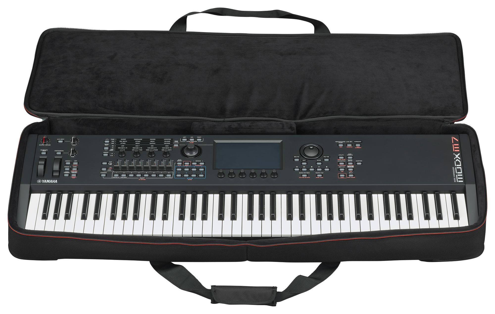The premium soft case for MODX M is protective, lightweight and stylish. The MODX M soft case is manufactured with top-notch nylon, high quality zippers, pockets for pedals and cables and a luxurious inside that will keep your MODX M protected and looking great for years to come.