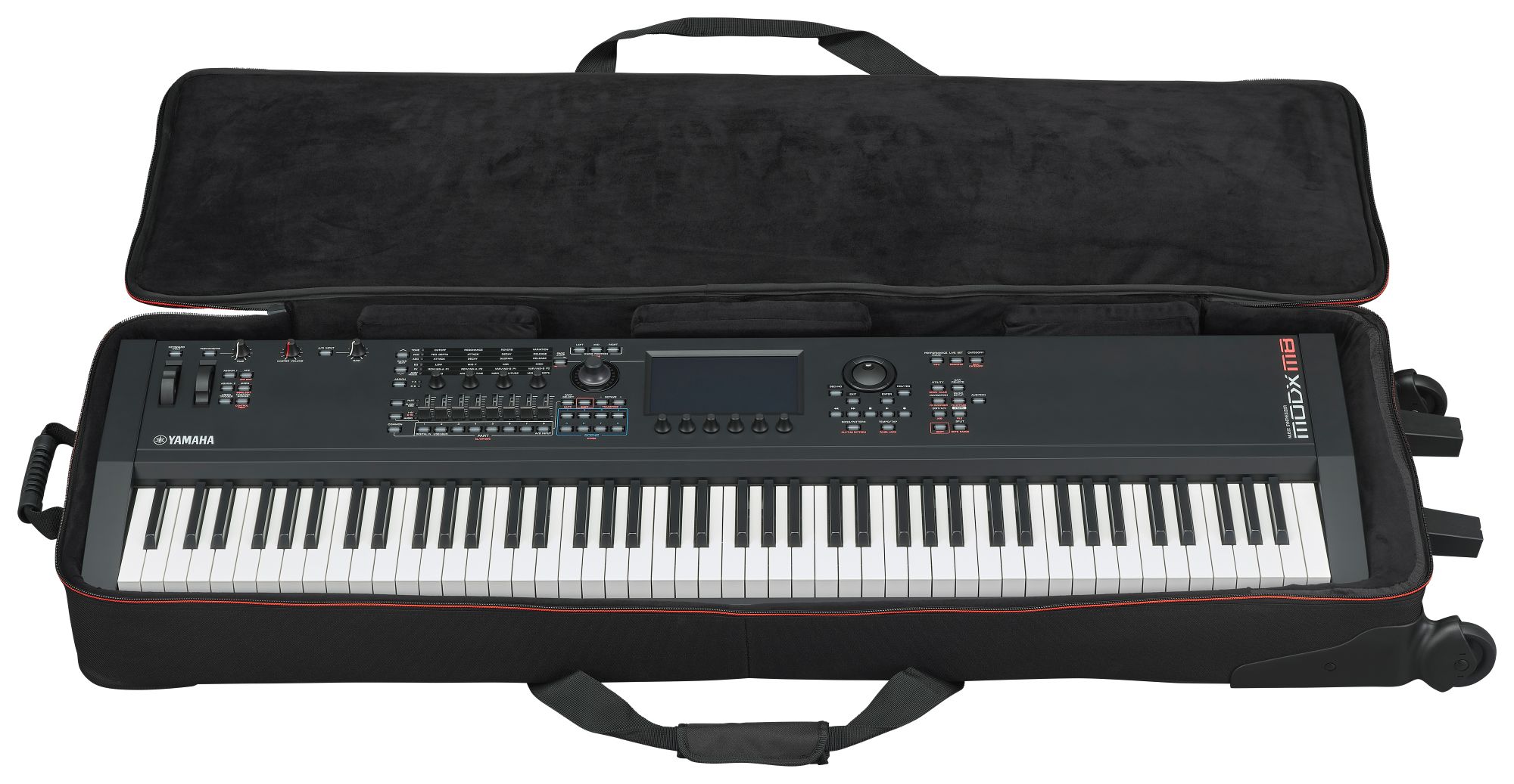 The premium soft case for MODX M is protective, lightweight and stylish. The MODX M soft case is manufactured with top-notch nylon, high quality zippers, pockets for pedals and cables and a luxurious inside that will keep your MODX M protected and looking great for years to come.