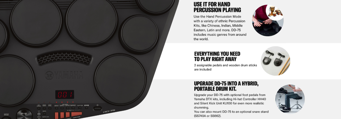 The Yamaha DD-75 is packed with features that enhance its playability and versatility: